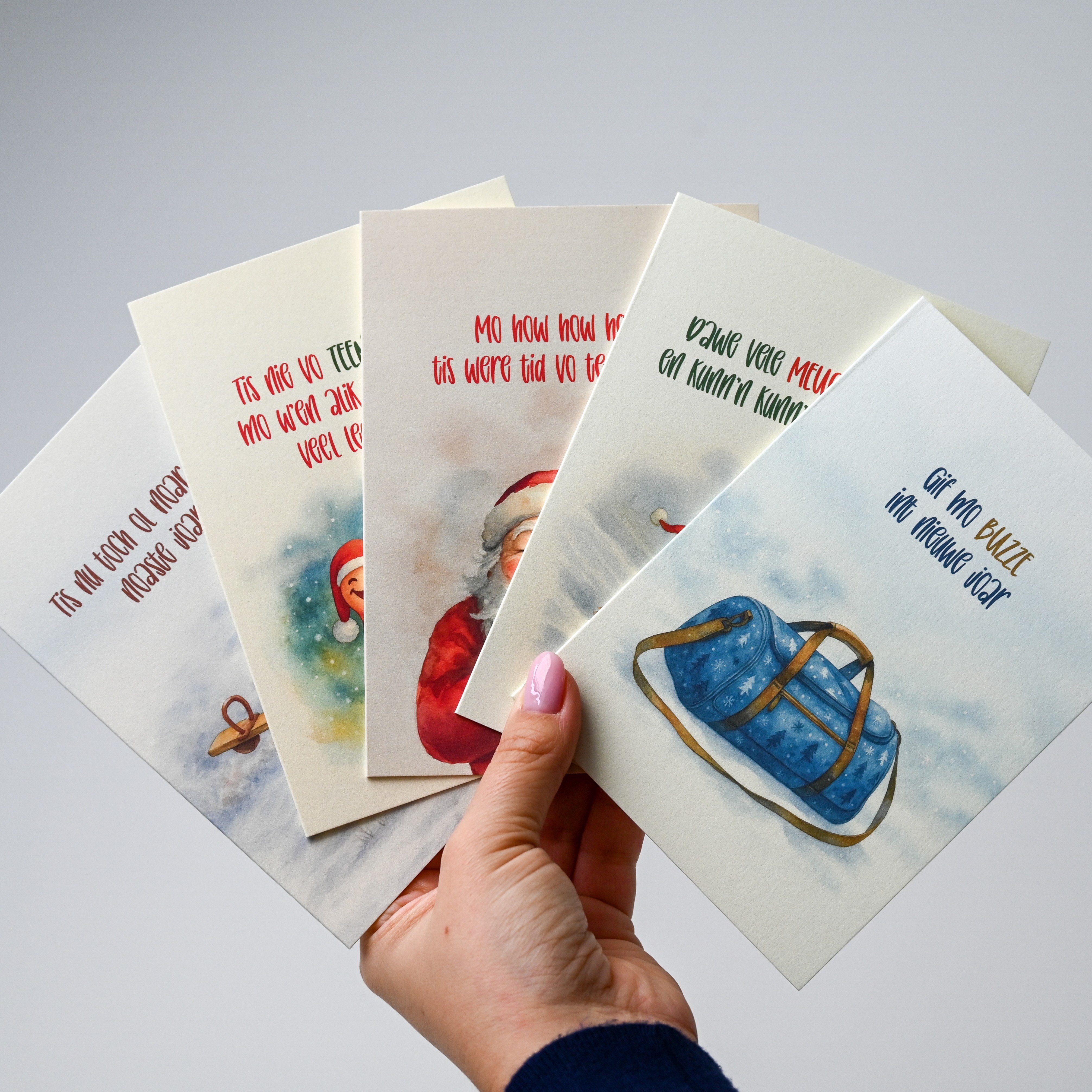 Ho ho ho, de feestdagen komen eraan! Wil je dit jaar écht indruk maken met je kerst- en nieuwjaarskaarten? Bij Jonkvrouw geloven we dat een kaart meer kan zijn dan een standaard “Prettige feestdagen”. Wij maken kerstkaarten en nieuwjaarskaartjes op maat die uniek, persoonlijk en helemaal in jouw stijl zijn.